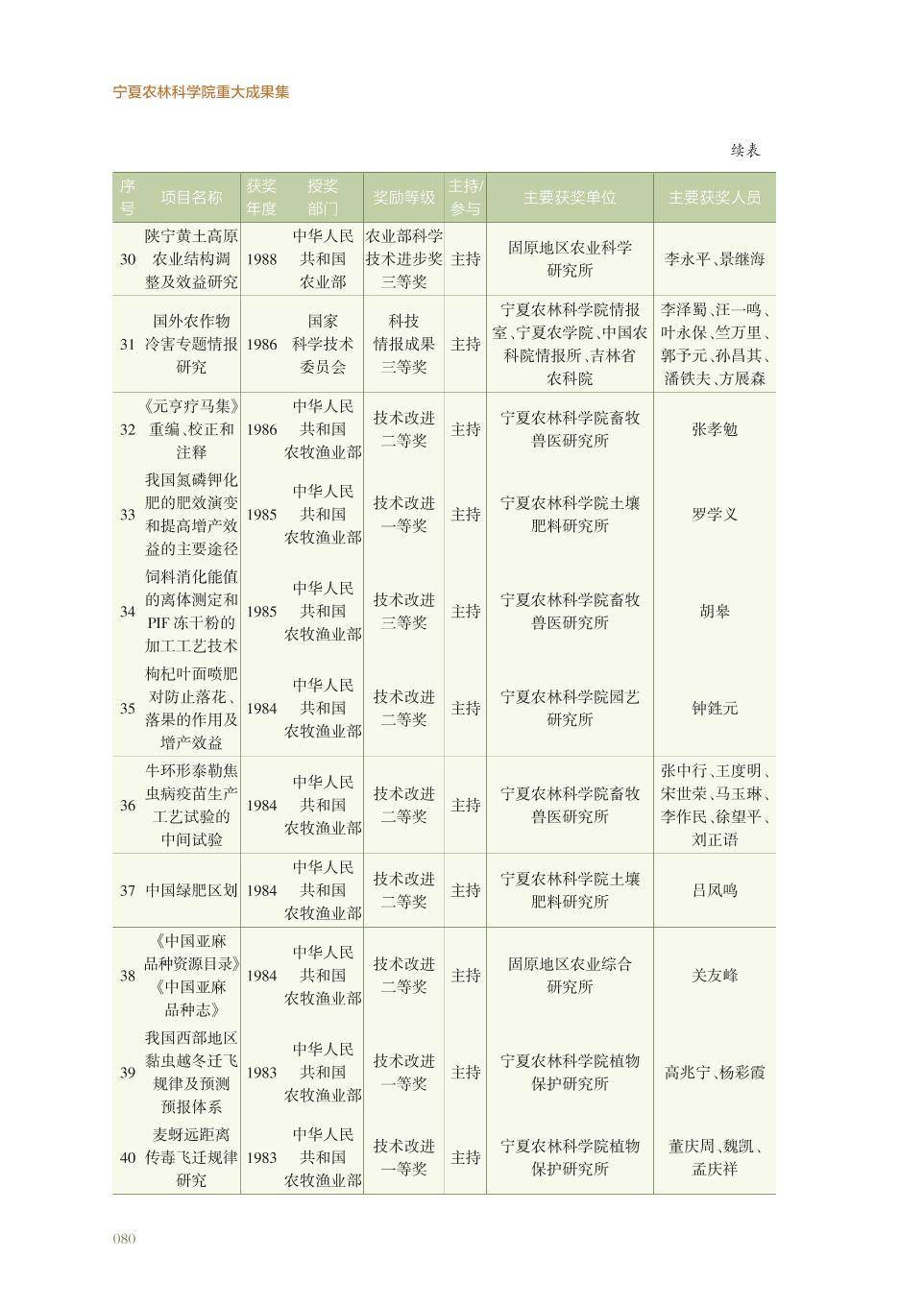 宁夏农林科学院获得国家部委奖科研成果名录