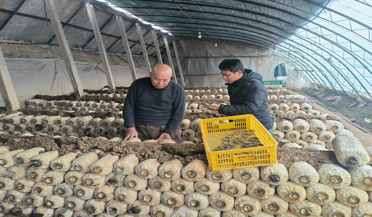 服务团在农户食用菌棚开展栽培技术指导
