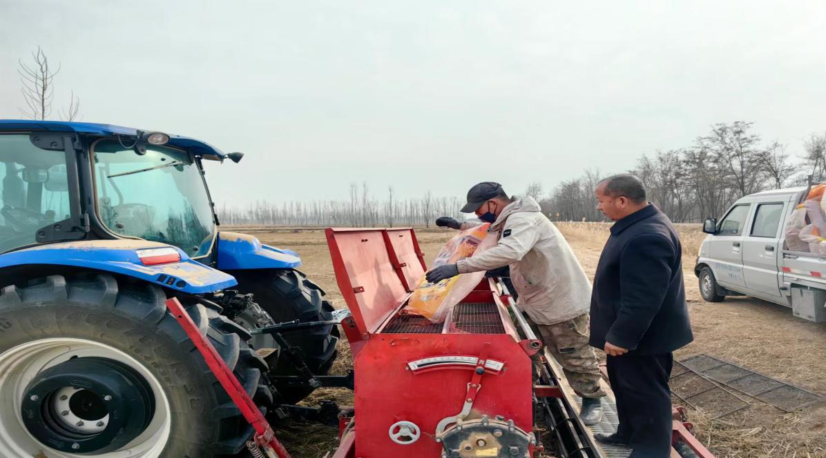 服务团深入梧桐树乡北滩村现场指导小麦播种